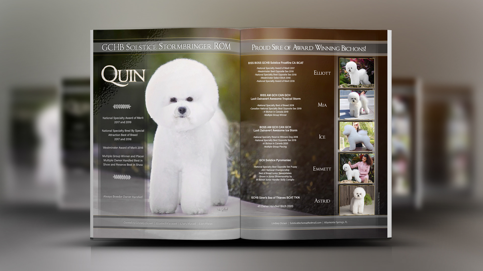If you wish to hire me to do your ad, I will need the specifications or contact information of the publication where you intend to advertise, along with all the information you wish to have included in the ad, and your high resolution photos (with photo credit information).