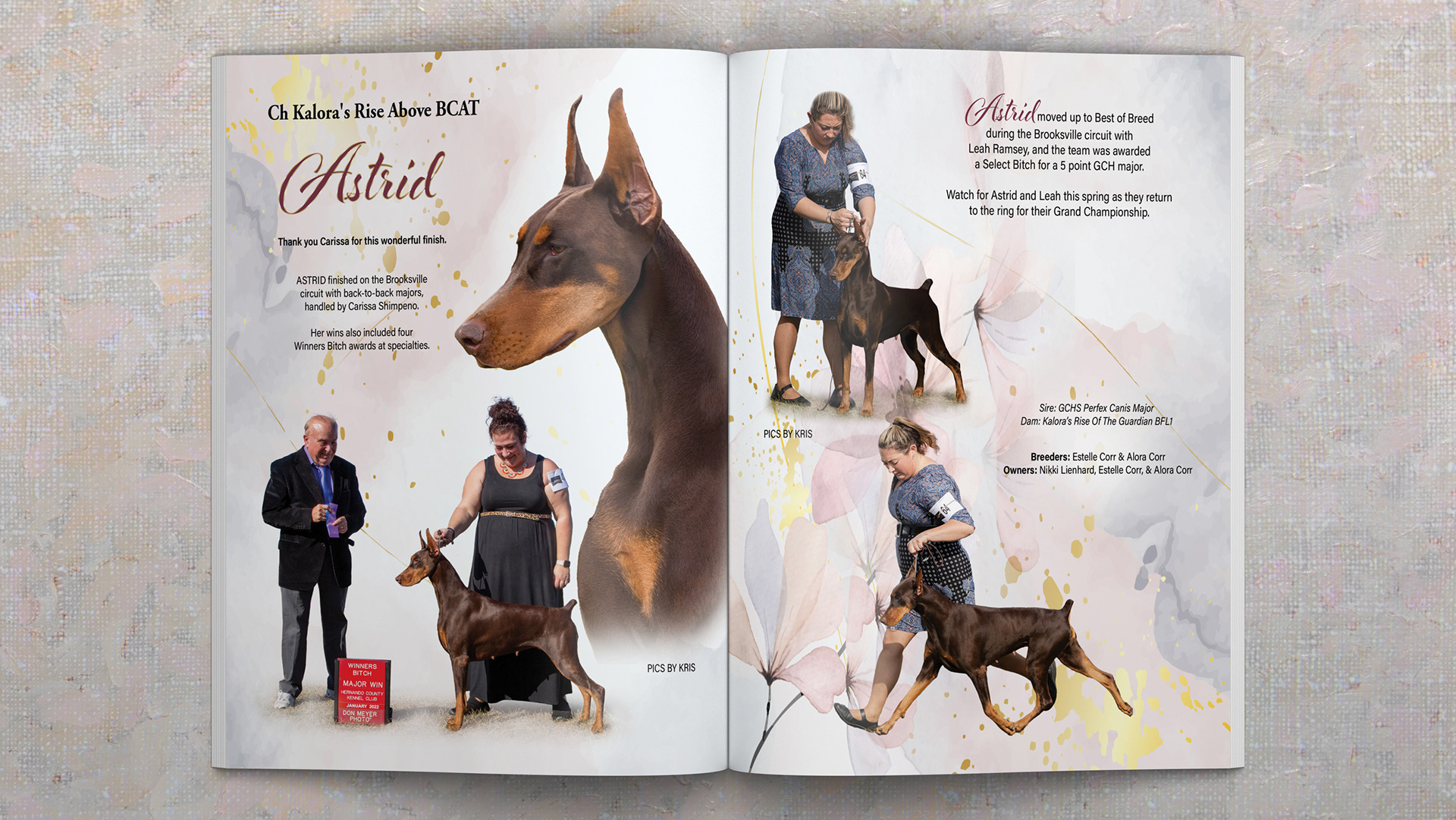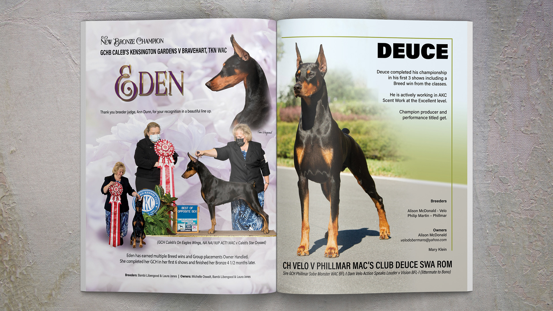 "Karen has been doing freelance ad design for our publication (The Doberman Network) for many years. We have grown to depend on Karen for her beautiful, clean designs, quick turn-around and exceptional customer service. Most importantly, our clients continue to be impressed with her work!"