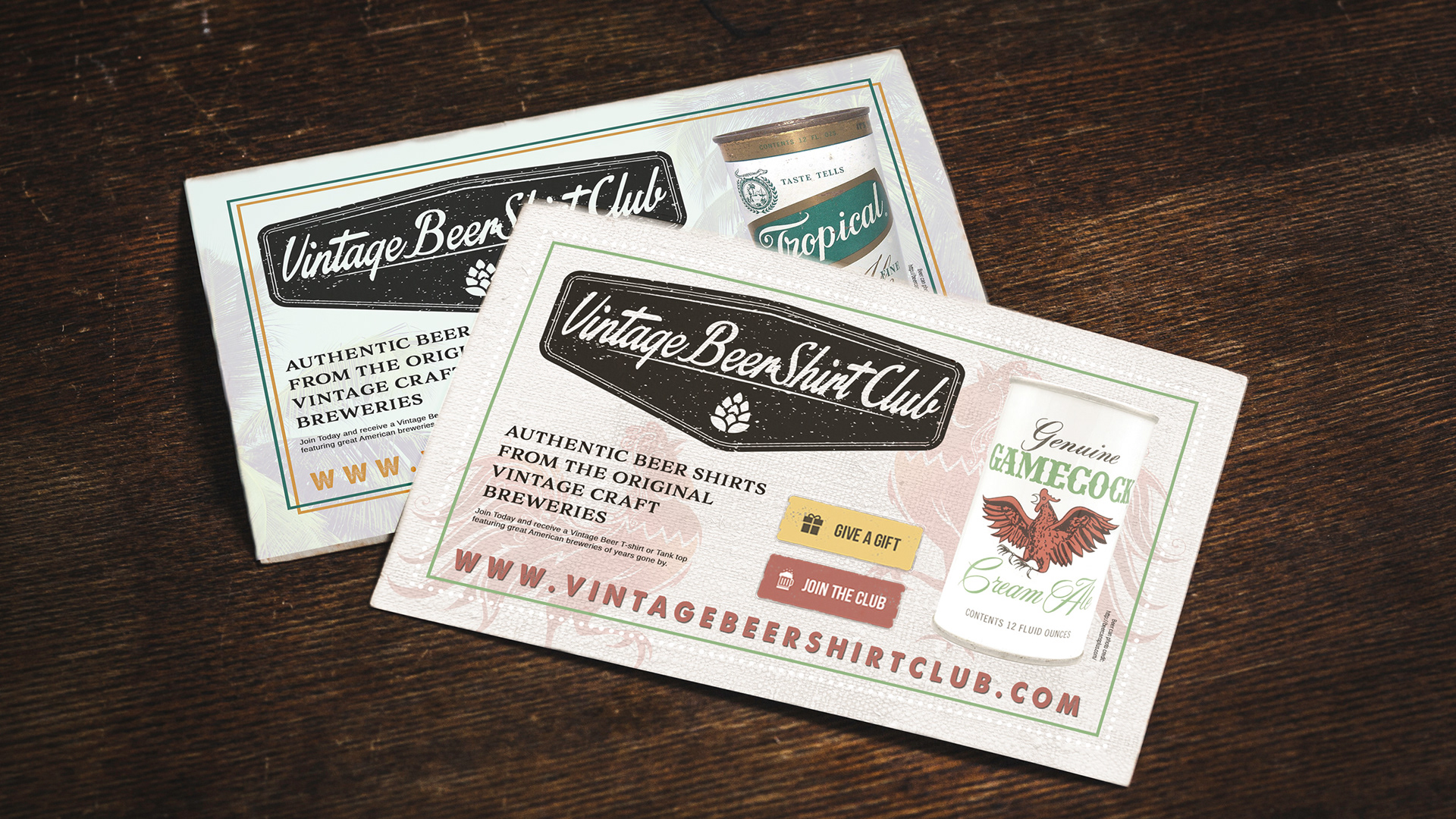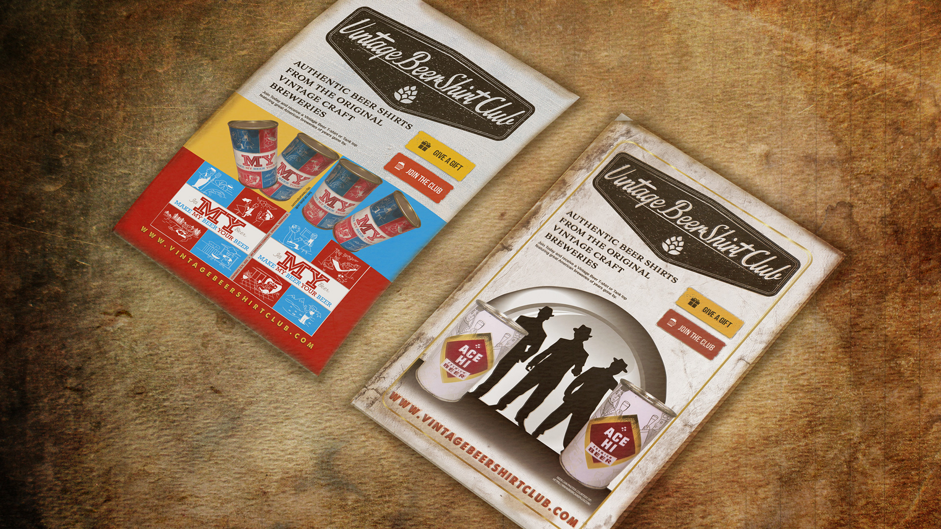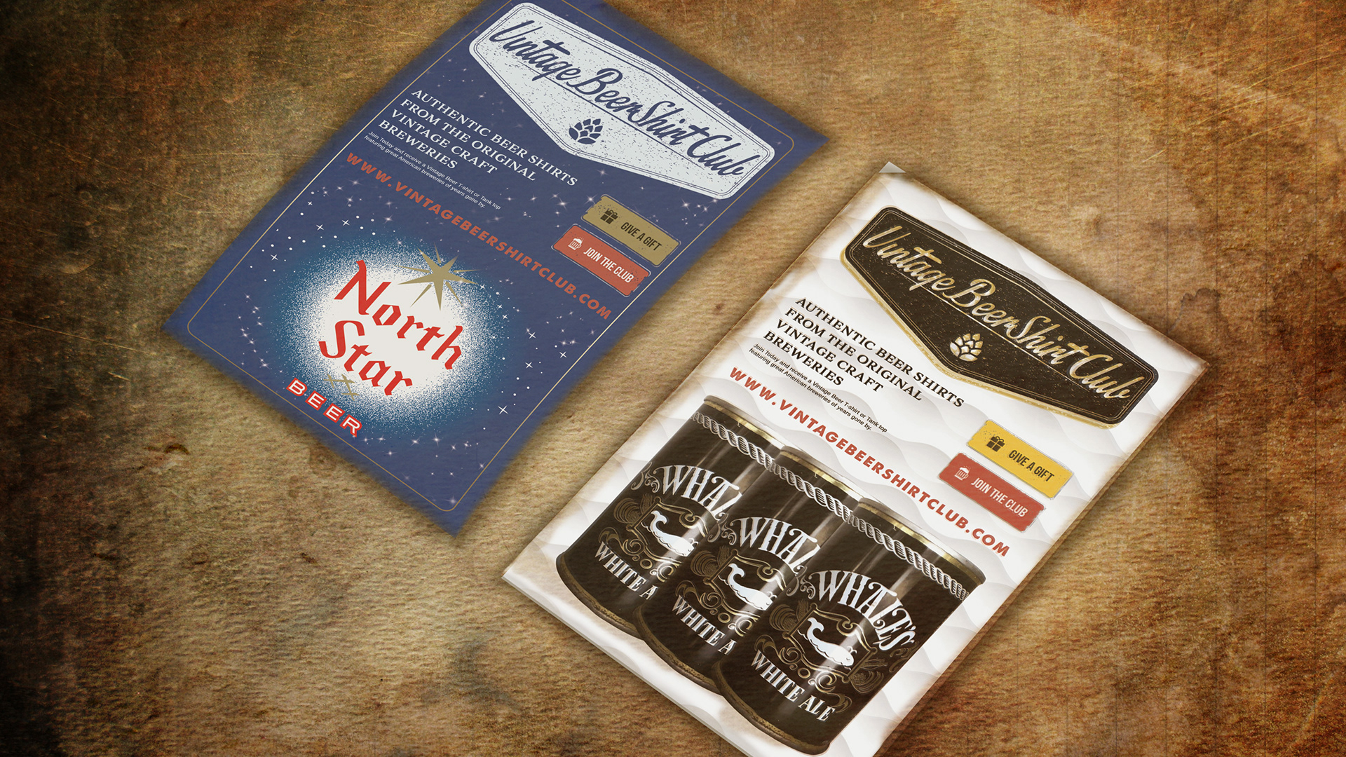 I created the double sided postcards that were included with the shirts, designed to compliment the Beer Shirt of the month artwork.