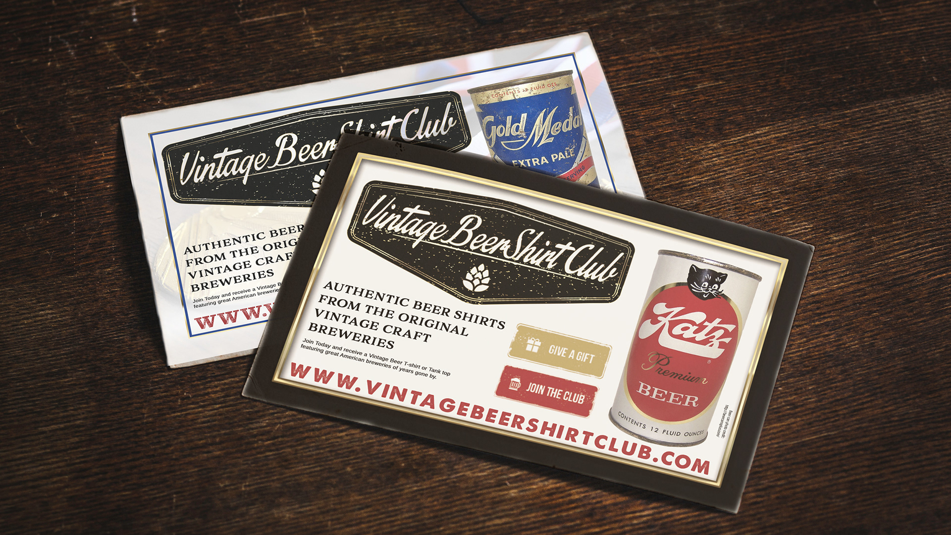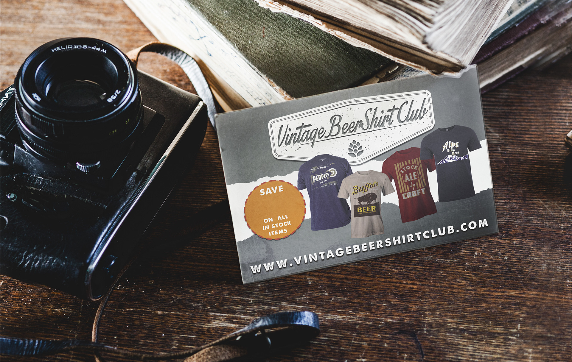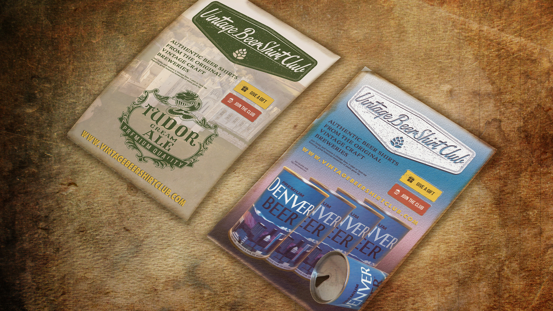 I created the double sided postcards that were included with the shirts, designed to compliment the Beer Shirt of the month artwork.